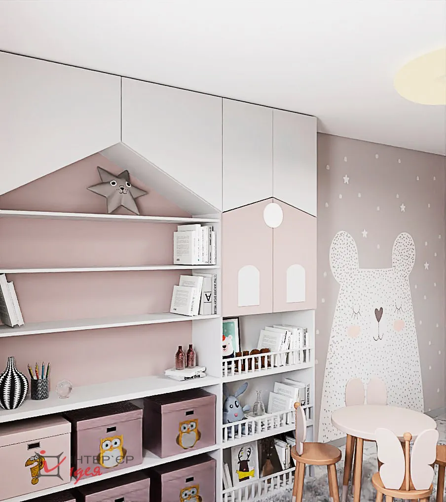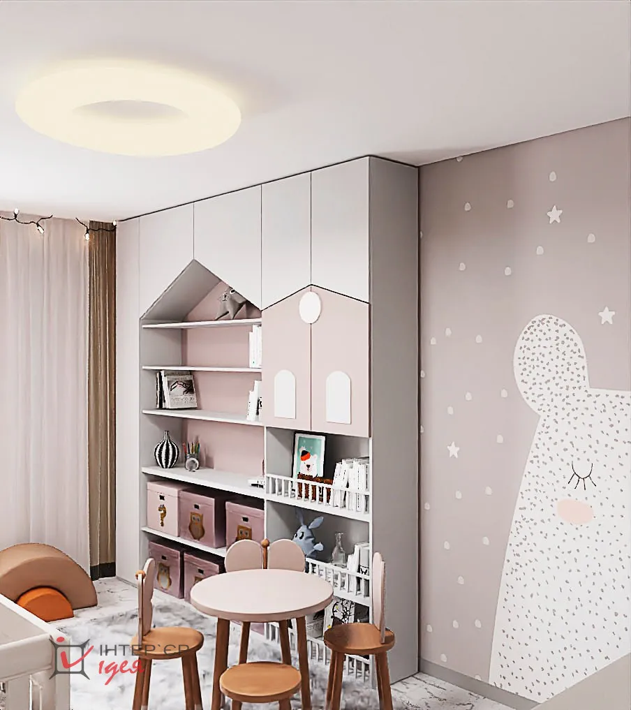 Надеемся что когда девочка вырастет, ей понравится практичность и эстетические решения в комнате.