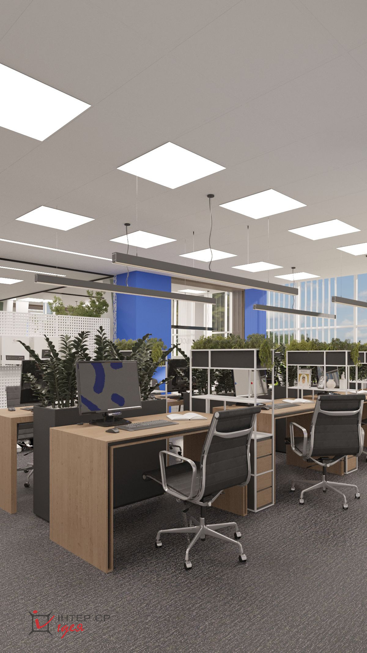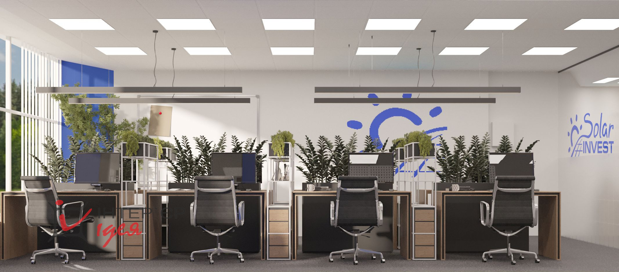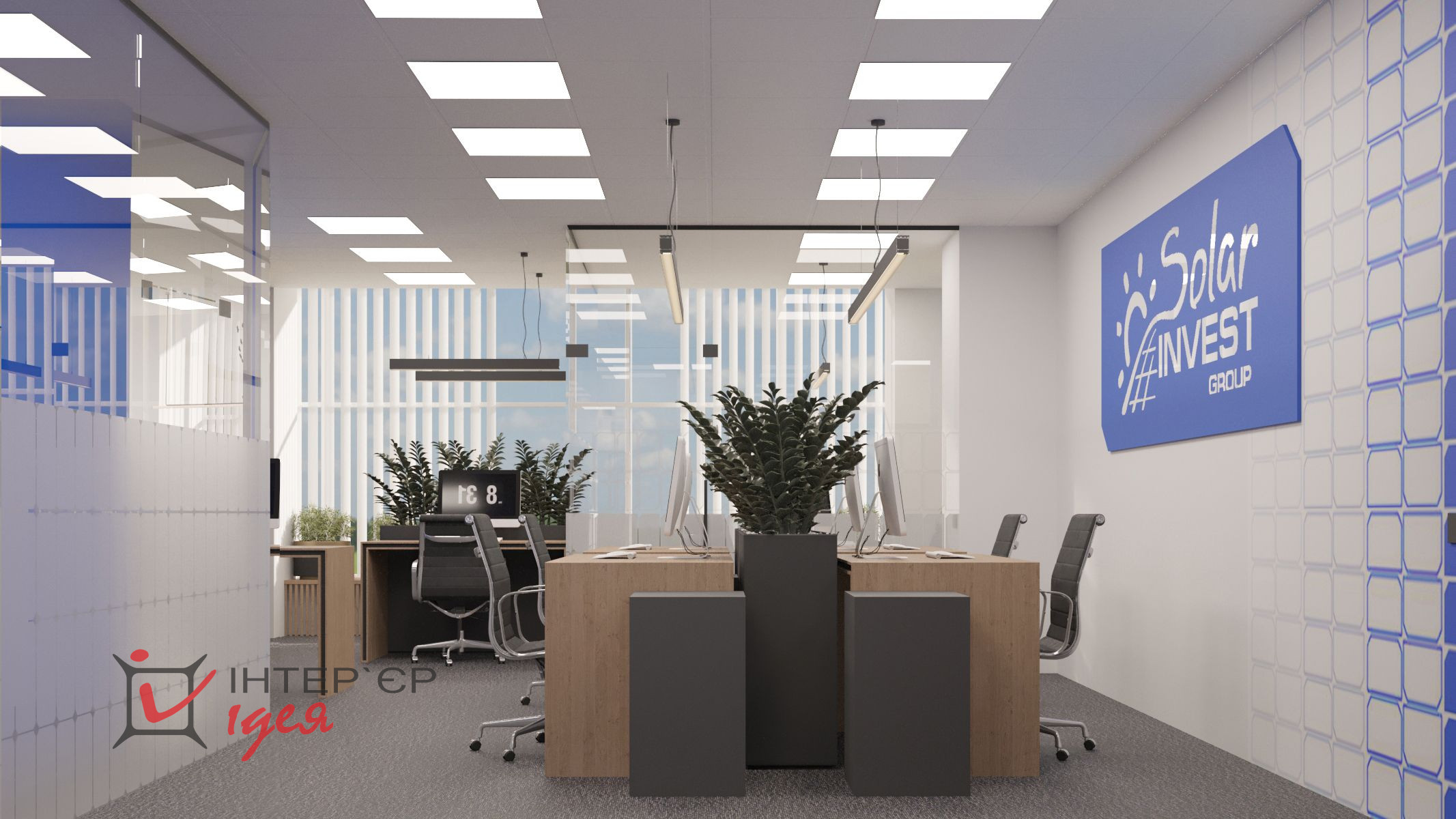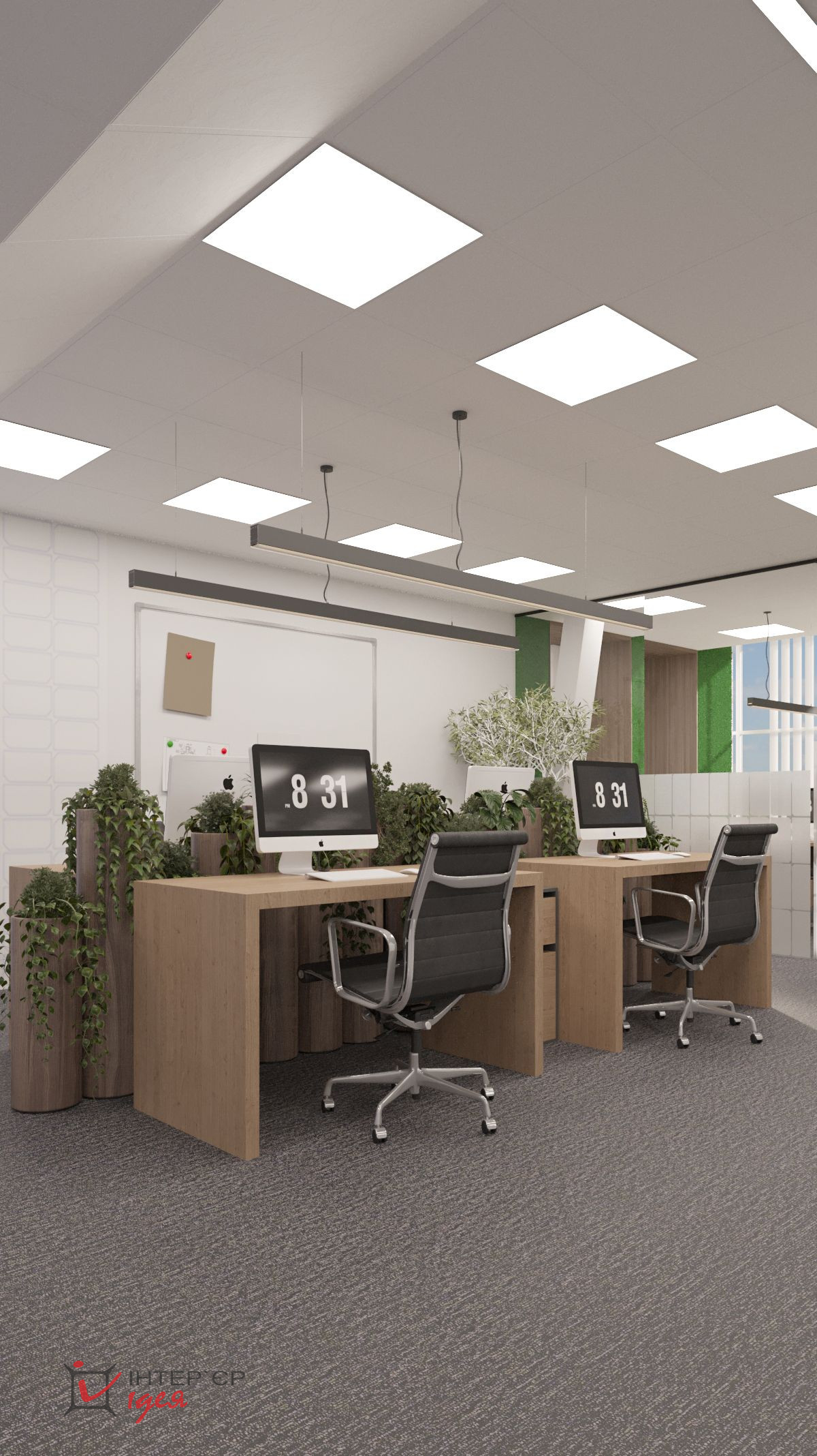 Естественное освещение, большие окна и светлые тона интерьера создают пространство, полное воздуха и света. Отдельная переговорная комната оборудована современной мультимедийной системой, эргономичной мебелью и расположена рядом с зоной отдыха, что позволяет легко переключаться между деловым общением и неформальным релаксом.