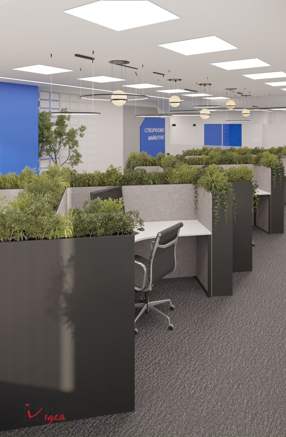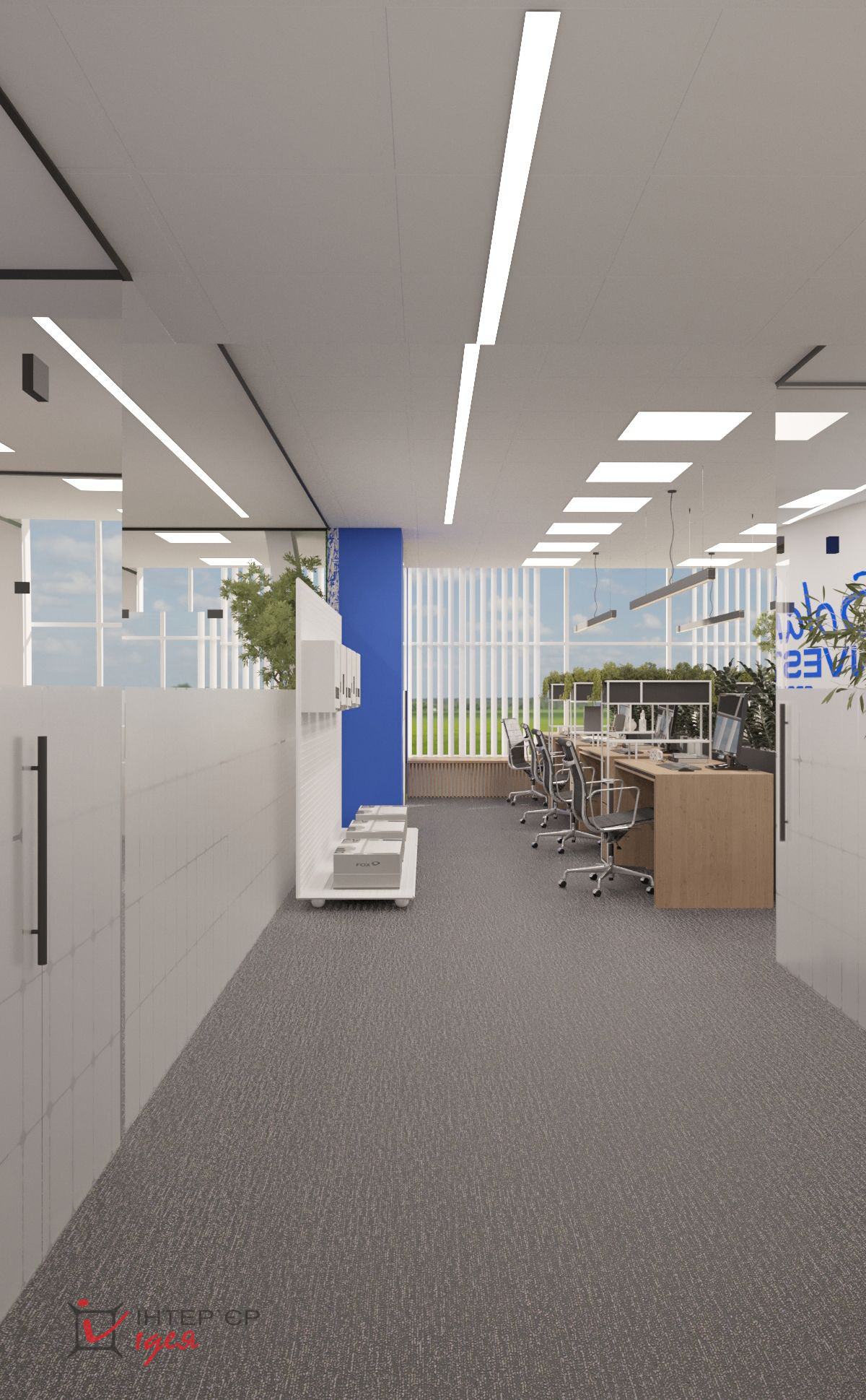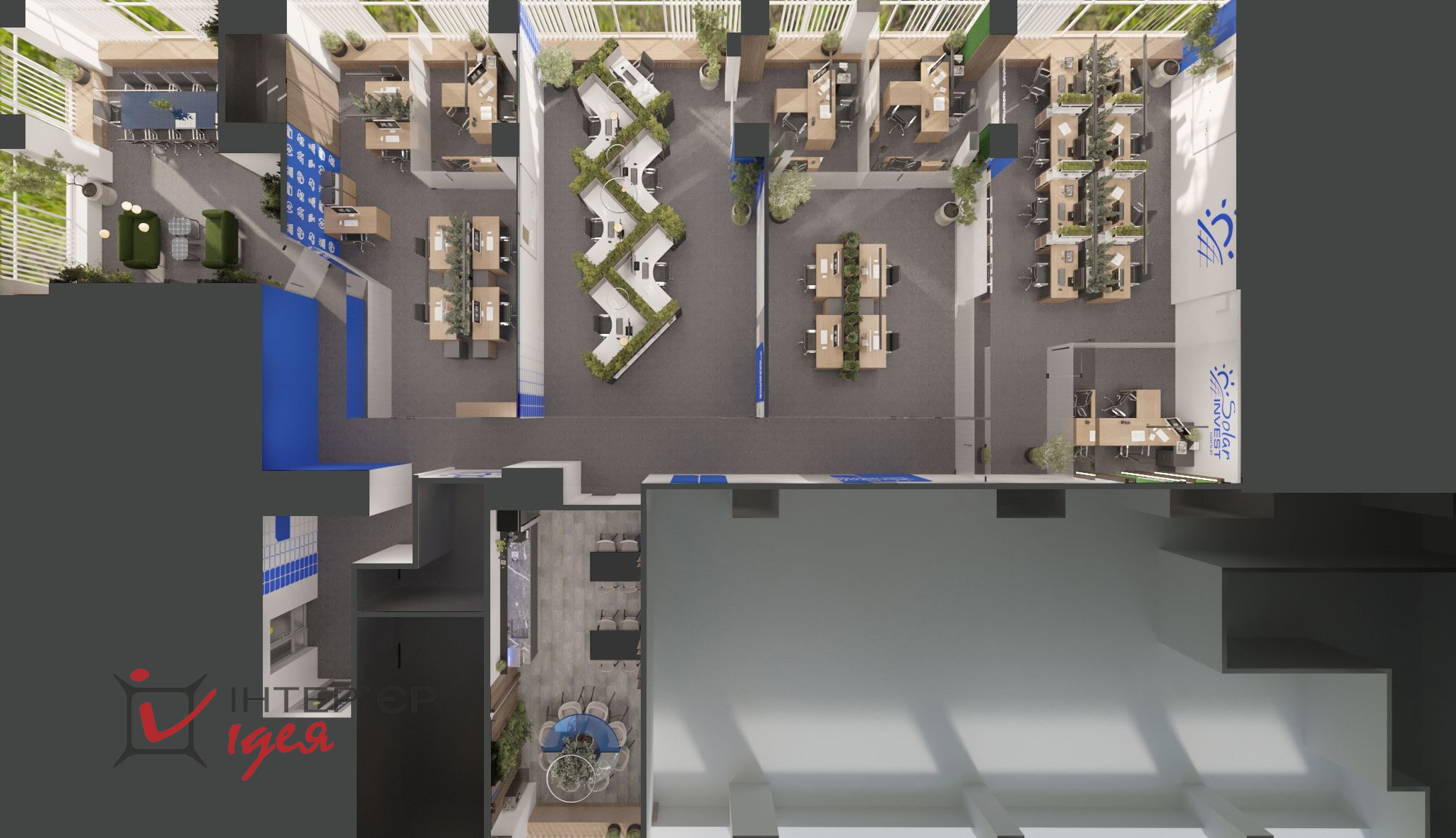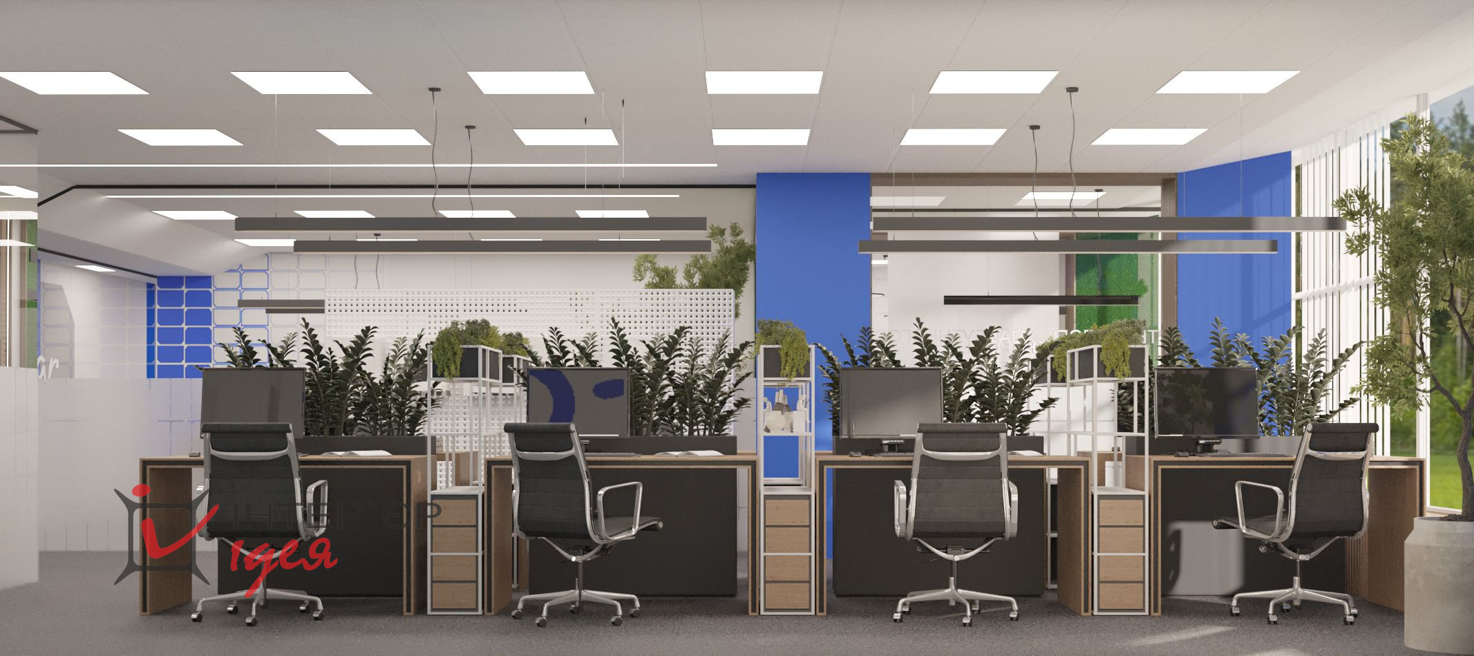 Естественное освещение, большие окна и светлые тона интерьера создают пространство, полное воздуха и света. Отдельная переговорная комната оборудована современной мультимедийной системой, эргономичной мебелью и расположена рядом с зоной отдыха, что позволяет легко переключаться между деловым общением и неформальным релаксом.